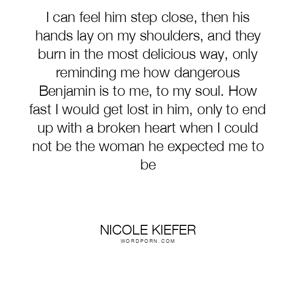 I can feel him step close, then his hands lay on my shoulders, and they burn in the most delicious way, only reminding me how dangerous Benjamin is to me, to my soul. How fast I would get lost in him, only to end up with a broken heart when I could not be the woman he expected me to be