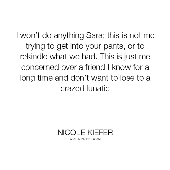 I won’t do anything Sara; this is not me trying to get into your pants, or to rekindle what we had. This is just me concerned over a friend I know for a long time and don’t want to lose to a crazed lunatic