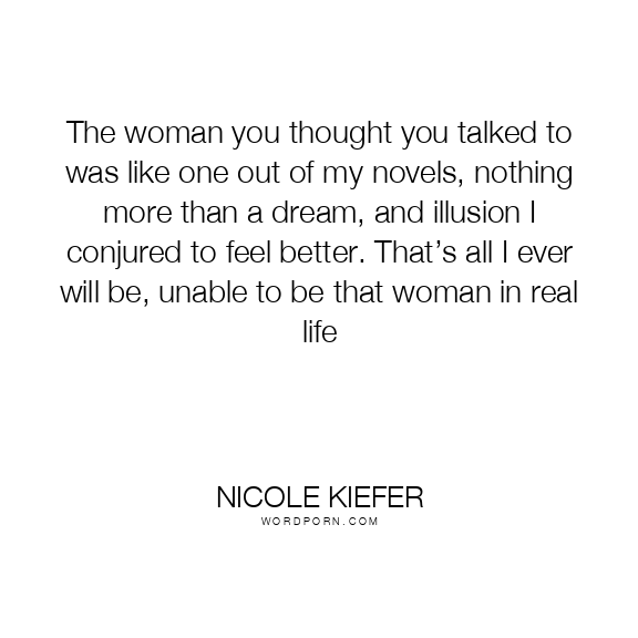The woman you thought you talked to was like one out of my novels, nothing more than a dream, and illusion I conjured to feel better. That’s all I ever will be, unable to be that woman in real life