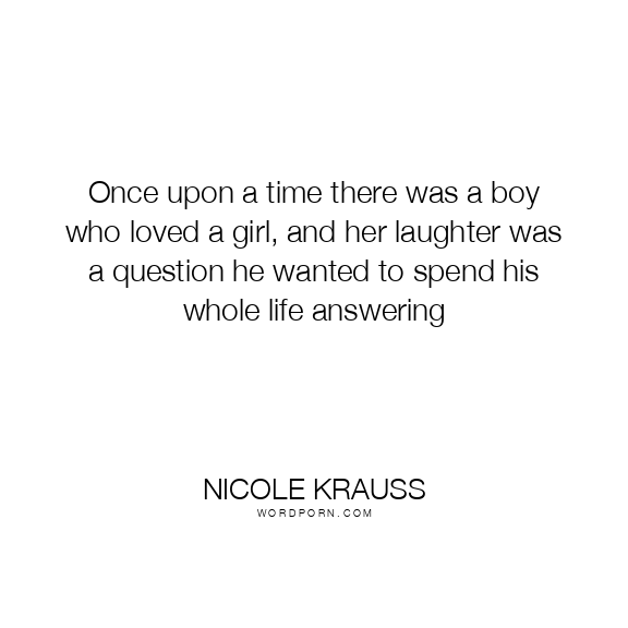 Once upon a time there was a boy who loved a girl, and her laughter was a question he wanted to spend his whole life answering