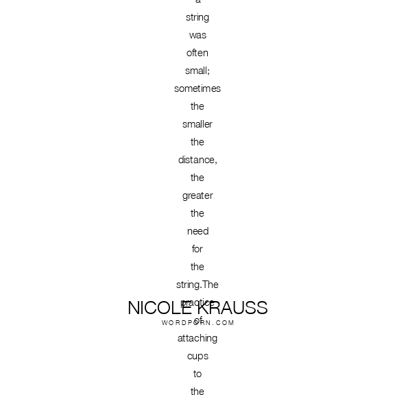 So many words get lost. They leave the mouth and lose their courage, wandering aimlessly until they are swept into the gutter like dead leaves. On rainy days, you can hear their chorus rushing past: IwasabeautifulgirlPleasedon’tgoItoobelievemybodyismadeofglass-I’veneverlovedanyoneIthinkofmyselfasfunnyForgiveme….There was a time when it wasn’t uncommon to use a piece of string to guide words that otherwise might falter on the way to their destinations. Shy people carried a little bunch of string in their pockets, but people considered loudmouths had no less need for it, since those used to being overheard by everyone were often at a loss for how to make themselves heard by someone. The physical distance between two people using a string was often small; sometimes the smaller the distance, the greater the need for the string.The practice of attaching cups to the ends of string came much later. Some say it is related to the irrepressible urge to press shells to our ears, to hear the still-surviving echo of the world’s first expression. Others say it was started by a man who held the end of a string that was unraveled across the ocean by a girl who left for America.When the world grew bigger, and there wasn’t enough string to keep the things people wanted to say from disappearing into the vastness, the telephone was invented.Sometimes no length of string is long enough to say the thing that needs to be said. In such cases all the string can do, in whatever its form, is conduct a person’s silence
