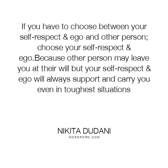If you have to choose between your self-respect & ego and other person; choose your self-respect & ego.Because other person may leave you at their will but your self-respect & ego will always support and carry you even in toughest situations