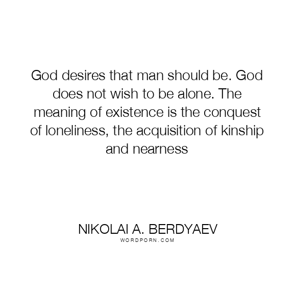 God desires that man should be. God does not wish to be alone. The meaning of existence is the conquest of loneliness, the acquisition of kinship and nearness