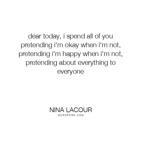 dear today, i spend all of you pretending i'm okay when i'm not, pretending i'm happy when i'm not, pretending about everything to everyone