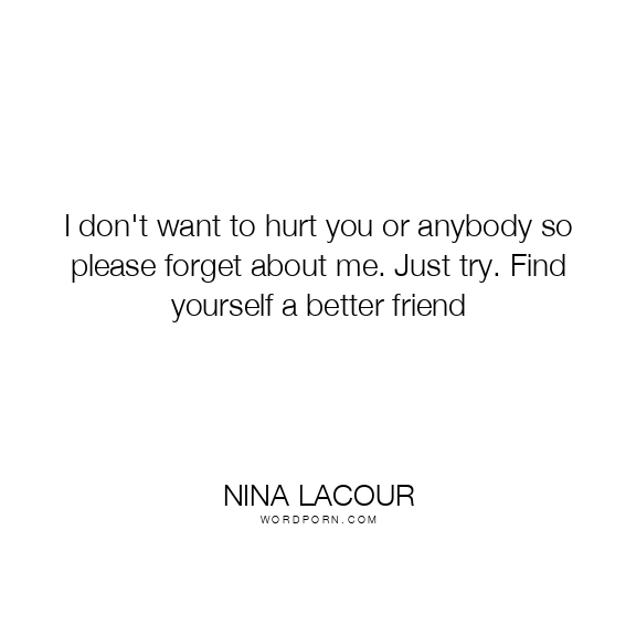 I don't want to hurt you or anybody so please forget about me. Just try. Find yourself a better friend