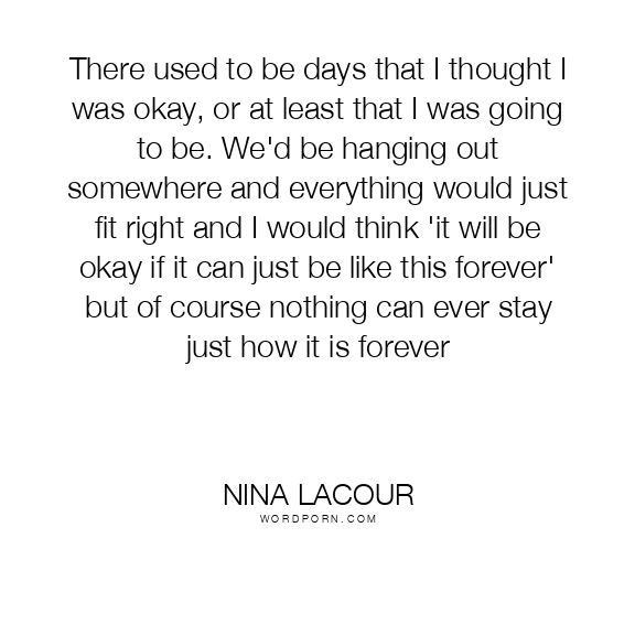 There used to be days that I thought I was okay, or at least that I was going to be. We'd be hanging out somewhere and everything would just fit right and I would think 'it will be okay if it can just be like this forever' but of course nothing can ever stay just how it is forever
