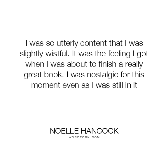I was so utterly content that I was slightly wistful. It was the feeling I got when I was about to finish a really great book. I was nostalgic for this moment even as I was still in it