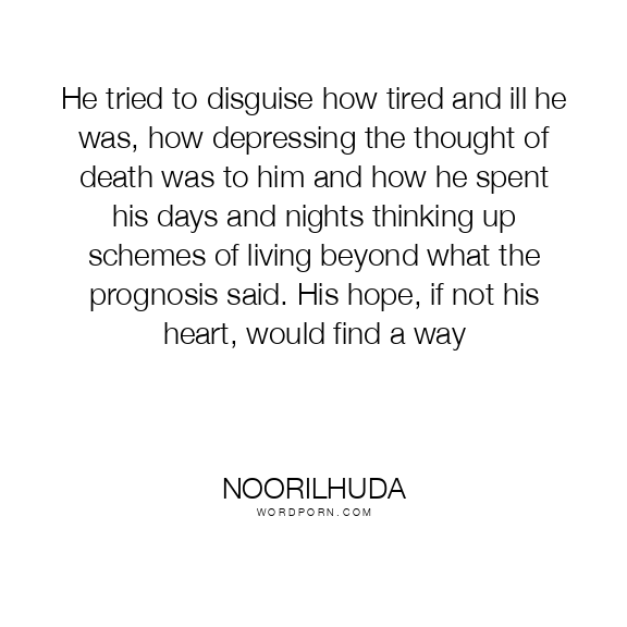 He tried to disguise how tired and ill he was, how depressing the thought of death was to him and how he spent his days and nights thinking up schemes of living beyond what the prognosis said. His hope, if not his heart, would find a way