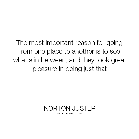 The most important reason for going from one place to another is to see what's in between, and they took great pleasure in doing just that