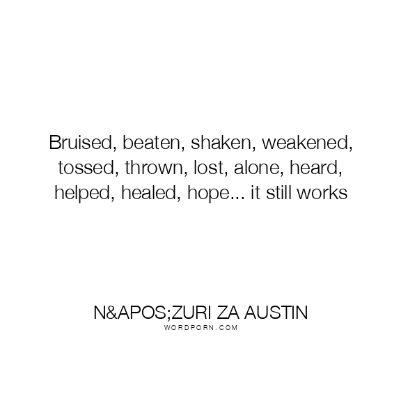 Bruised, beaten, shaken, weakened, tossed, thrown, lost, alone, heard, helped, healed, hope... it still works