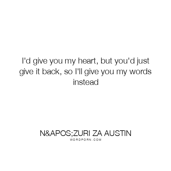 I'd give you my heart, but you'd just give it back, so I'll give you my words instead