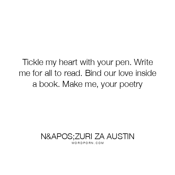 Tickle my heart with your pen. Write me for all to read. Bind our love inside a book. Make me, your poetry