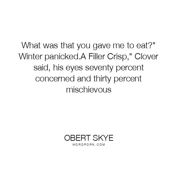 What was that you gave me to eat?" Winter panicked.A Filler Crisp," Clover said, his eyes seventy percent concerned and thirty percent mischievous