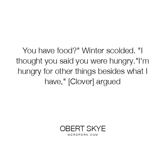 You have food?" Winter scolded. "I thought you said you were hungry."I'm hungry for other things besides what I have," [Clover] argued