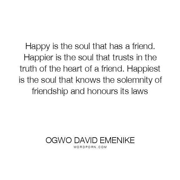 Happy is the soul that has a friend. Happier is the soul that trusts in the truth of the heart of a friend. Happiest is the soul that knows the solemnity of friendship and honours its laws
