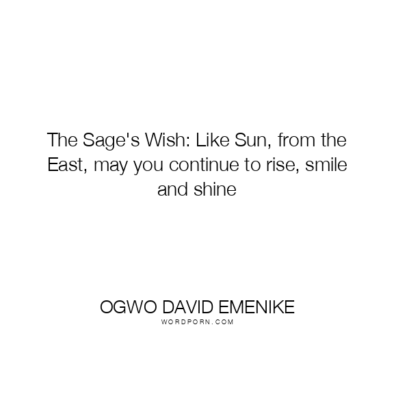 The Sage's Wish: Like Sun, from the East, may you continue to rise, smile and shine