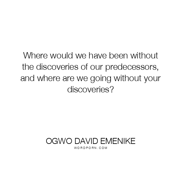 Where would we have been without the discoveries of our predecessors, and where are we going without your discoveries?
