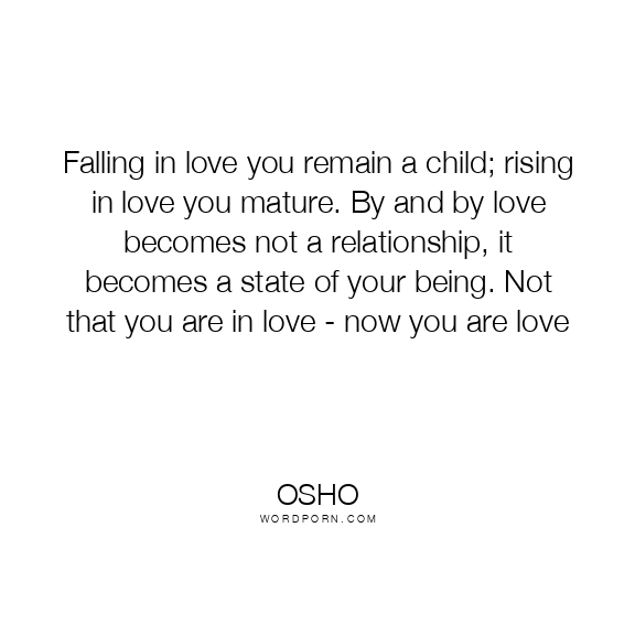 Falling in love you remain a child; rising in love you mature. By and by love becomes not a relationship, it becomes a state of your being. Not that you are in love - now you are love