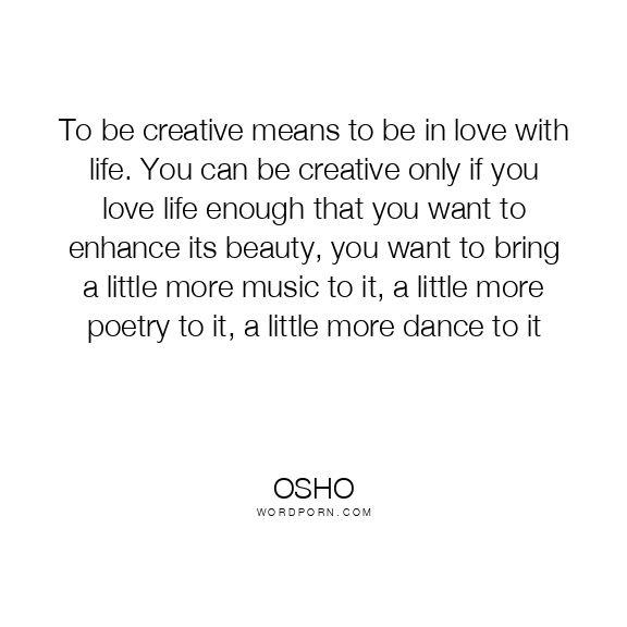 To be creative means to be in love with life. You can be creative only if you love life enough that you want to enhance its beauty, you want to bring a little more music to it, a little more poetry to it, a little more dance to it