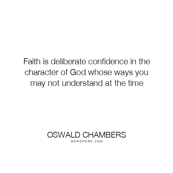 Faith is deliberate confidence in the character of God whose ways you may not understand at the time