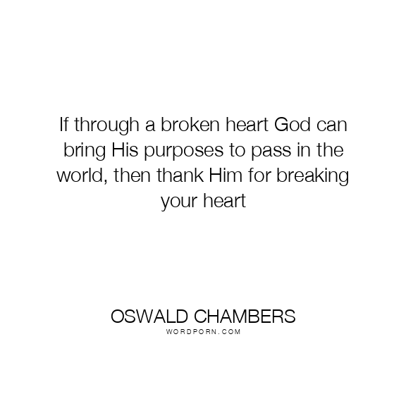 If through a broken heart God can bring His purposes to pass in the world, then thank Him for breaking your heart