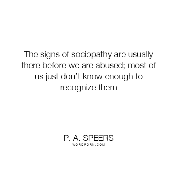 Copy Image The signs of sociopathy are usually there before we are abused; most of us just don’t know enough to recognize them Moms Typewriter A A SAVE THIS IMAGE