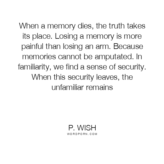 When a memory dies, the truth takes its place. Losing a memory is more painful than losing an arm. Because memories cannot be amputated. In familiarity, we find a sense of security. When this security leaves, the unfamiliar remains