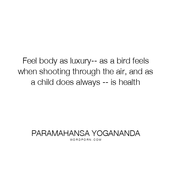 Feel body as luxury-- as a bird feels when shooting through the air, and as a child does always -- is health