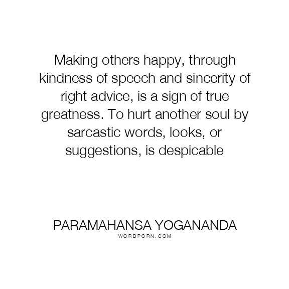 Making others happy, through kindness of speech and sincerity of right advice, is a sign of true greatness. To hurt another soul by sarcastic words, looks, or suggestions, is despicable