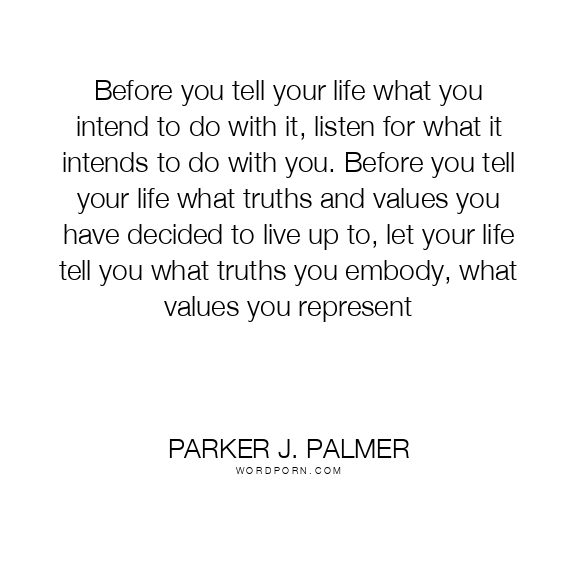 Before you tell your life what you intend to do with it, listen for what it intends to do with you. Before you tell your life what truths and values you have decided to live up to, let your life tell you what truths you embody, what values you represent