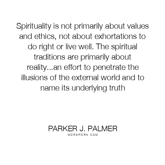 Spirituality is not primarily about values and ethics, not about exhortations to do right or live well. The spiritual traditions are primarily about reality...an effort to penetrate the illusions of the external world and to name its underlying truth