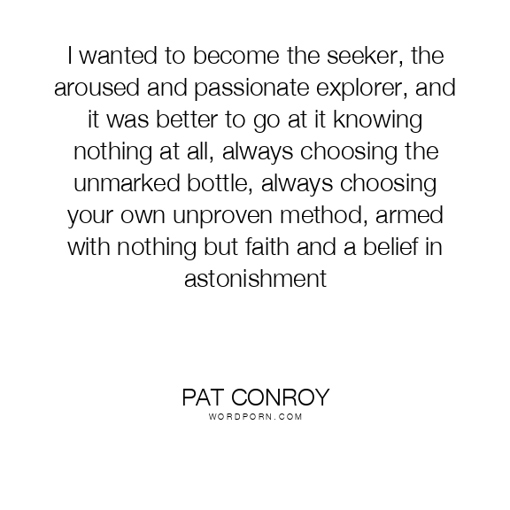 I wanted to become the seeker, the aroused and passionate explorer, and it was better to go at it knowing nothing at all, always choosing the unmarked bottle, always choosing your own unproven method, armed with nothing but faith and a belief in astonishment