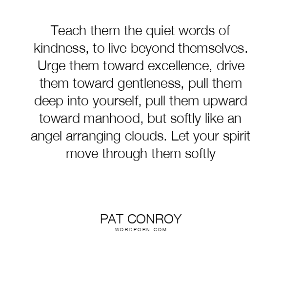 Teach them the quiet words of kindness, to live beyond themselves. Urge them toward excellence, drive them toward gentleness, pull them deep into yourself, pull them upward toward manhood, but softly like an angel arranging clouds. Let your spirit move through them softly