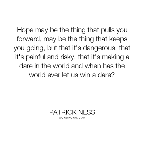 Hope may be the thing that pulls you forward, may be the thing that keeps you going, but that it's dangerous, that it's painful and risky, that it's making a dare in the world and when has the world ever let us win a dare?