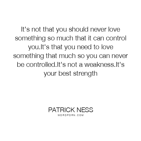 It's not that you should never love something so much that it can control you.It's that you need to love something that much so you can never be controlled.It's not a weakness.It's your best strength