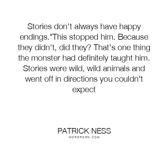 Stories don't always have happy endings."This stopped him. Because they didn't, did they? That's one thing the monster had definitely taught him. Stories were wild, wild animals and went off in directions you couldn't expect