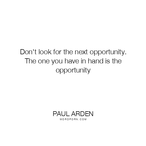 Don't look for the next opportunity. The one you have in hand is the opportunity