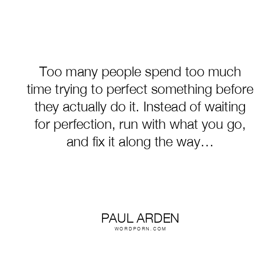 Too many people spend too much time trying to perfect something before they actually do it. Instead of waiting for perfection, run with what you go, and fix it along the way…