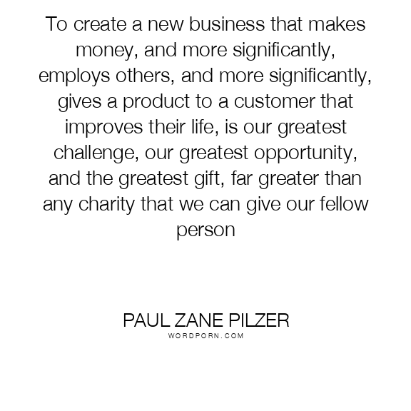 To create a new business that makes money, and more significantly, employs others, and more significantly, gives a product to a customer that improves their life, is our greatest challenge, our greatest opportunity, and the greatest gift, far greater than any charity that we can give our fellow person