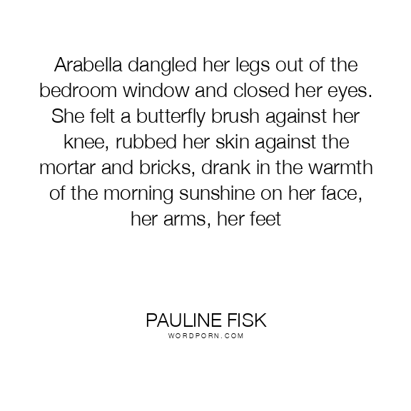 Arabella dangled her legs out of the bedroom window and closed her eyes. She felt a butterfly brush against her knee, rubbed her skin against the mortar and bricks, drank in the warmth of the morning sunshine on her face, her arms, her feet