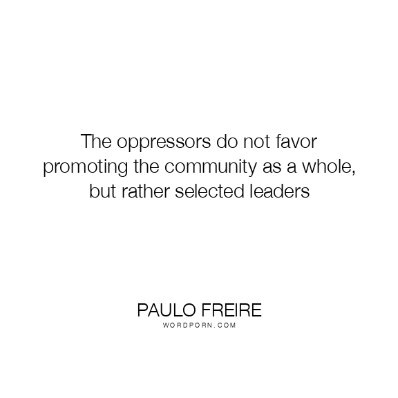 The oppressors do not favor promoting the community as a whole, but rather selected leaders