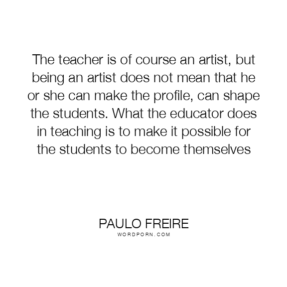 The teacher is of course an artist, but being an artist does not mean that he or she can make the profile, can shape the students. What the educator does in teaching is to make it possible for the students to become themselves