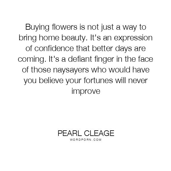 Buying flowers is not just a way to bring home beauty. It's an expression of confidence that better days are coming. It's a defiant finger in the face of those naysayers who would have you believe your fortunes will never improve