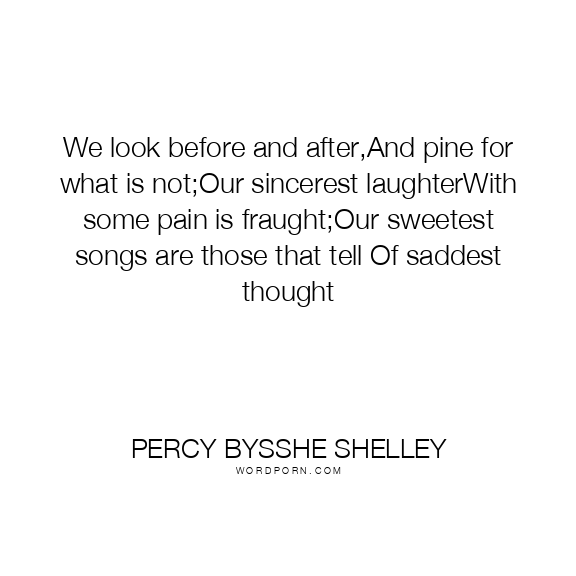 We look before and after,And pine for what is not;Our sincerest laughterWith some pain is fraught;Our sweetest songs are those that tell Of saddest thought