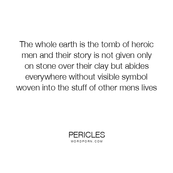 The whole earth is the tomb of heroic men and their story is not given only on stone over their clay but abides everywhere without visible symbol woven into the stuff of other mens lives