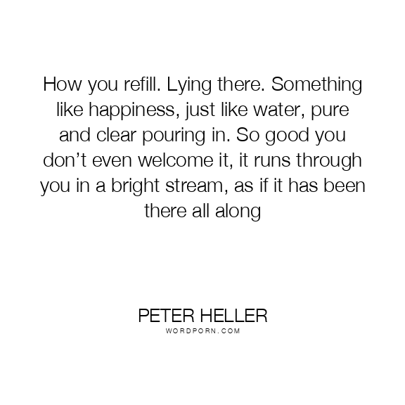 How you refill. Lying there. Something like happiness, just like water, pure and clear pouring in. So good you don’t even welcome it, it runs through you in a bright stream, as if it has been there all along