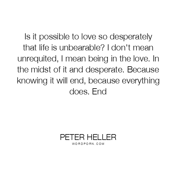 Is it possible to love so desperately that life is unbearable? I don't mean unrequited, I mean being in the love. In the midst of it and desperate. Because knowing it will end, because everything does. End