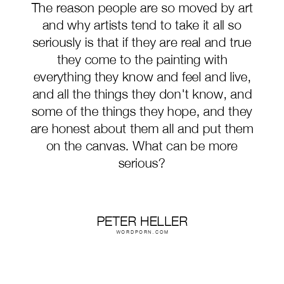 The reason people are so moved by art and why artists tend to take it all so seriously is that if they are real and true they come to the painting with everything they know and feel and live, and all the things they don't know, and some of the things they hope, and they are honest about them all and put them on the canvas. What can be more serious?