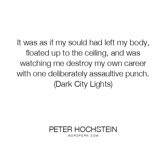 It was as if my sould had left my body, floated up to the ceiling, and was watching me destroy my own career with one deliberately assaultive punch. (Dark City Lights)