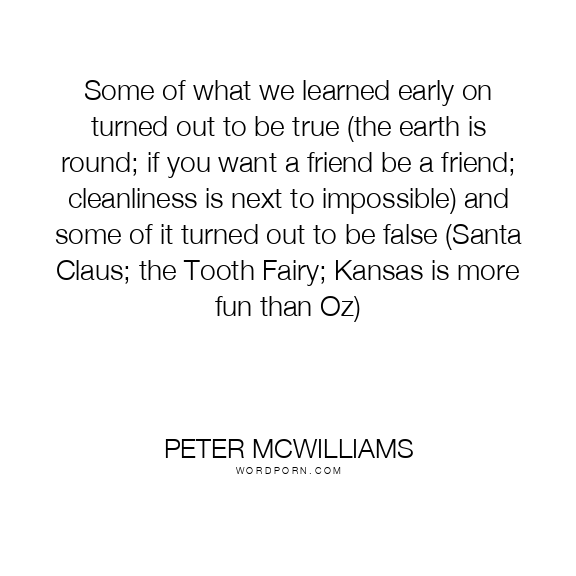 Some of what we learned early on turned out to be true (the earth is round; if you want a friend be a friend; cleanliness is next to impossible) and some of it turned out to be false (Santa Claus; the Tooth Fairy; Kansas is more fun than Oz)